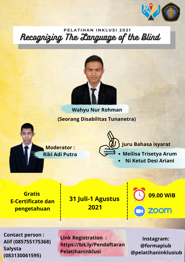 Saya merupakan seorang fresh graduate yang memiliki pengalaman sebagai peer counselor, asisten penelitian, publikasi jurnal, hrd, pemateri dan juga mendesain baik poster maupun video.
